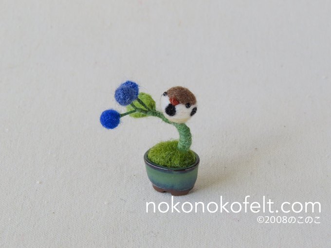 おはようございます。 今日の羊毛フェルト作品は「まんまることり®︎のすずめちゃんと超ミニ羊毛盆栽のサワフタギ」 サワフタギの青い実が綺麗なんですよね〜! 小さいけど、立派な盆栽😆 プレゼントにおすすめです🎁 lit.link/nokonokofelt #のこのこ #羊毛フェルト #すずめ #クリマ twitter.com/i/web/status/1…