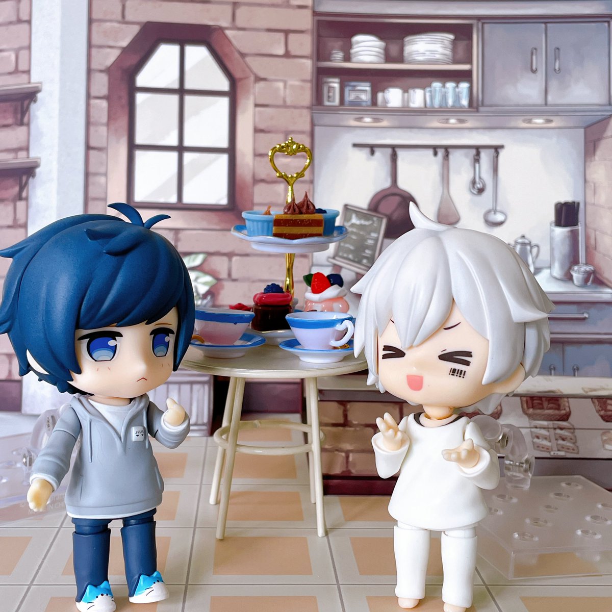 お揃いコーデ③(公式そらるさんは初めて) うちのそらるくんとまふくんとお揃いの服着てお買い物! はんぺん紙袋は私の手作り! #まふまふねんどろいど #まふまふ #そらるねんどろいど #そらる