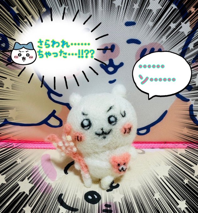 入れ替わっちゃった時の3人も新鮮で可愛いかったですよね💕︎ 「オーッ…❓泣いたッ」 モモンガちゃんに泣かされちゃった🥲 #ちいかわファンアート #羊毛フェルト twitter.com/ngnchiikawa/st…