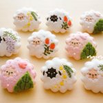 #新しい出会いがある季節にまだ知らない素敵な作品に出会えるタグ シートフェルトのちっちゃな羊 #ちびもこ さんです🐑 シンプルなプレーン(おねむ)に、とろりんチョコレートがかかったこ、植物モチーフのこ等色々😉