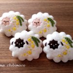 #みんなのバレンタイン作品がみたい 初期はリアルチョコをイメージした5種類から🍫(画像1枚目) その後、これは?あれは?とリクエストを頂いて、色々な組み合わせで沢山のこ達が生まれました🐑 今年は…今ちょっと充電期間中なので、ホワイトデーに出せると良いかな🙏💭 #ちびもこ #シートフェルト