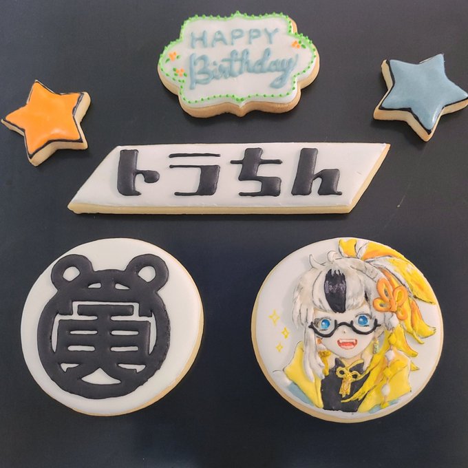 間に合った〜! お誕生日and4万人突破おめでとうございます!お祝いにアイシングクッキー作りました。 イラストではないですが、タグお借りします!お絵描きは苦手なので、これもFAのひとつとお許しくださいm(*_ _)m #ちん絵 #トラちん