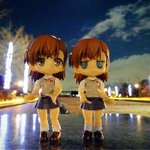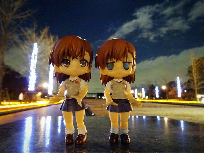 #夜のフィギュア撮影会 【電】 我が家の電気ビリビリ姉妹と学園都市のイルミネーションに出かけた思い出の写真だよ! ヽ(^o^)丿ヽ(^o^)丿イエーイ!💕✌️⚡️ #オモ写 #キューポッシュ #とある科学の超電磁砲 #立川 過去