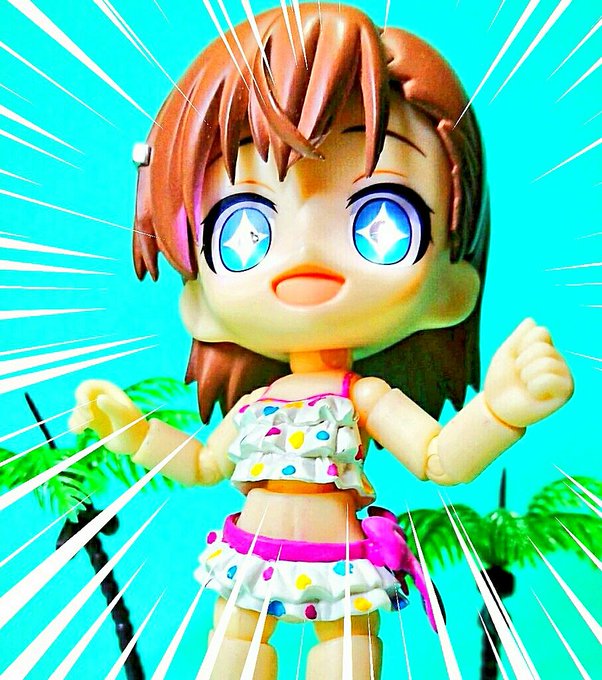 #夜のフィギュア撮影会 【海】 海ではしゃぐ美琴お姉さま! ヾ(≧∇≦)キャッ!🌴☀️💕👼👍️✨ 目にチップLEDを仕込んだ時の写真です! #オモ写 #キューポッシュ #とある科学の超電磁砲 #とある魔術の禁書目録 過去