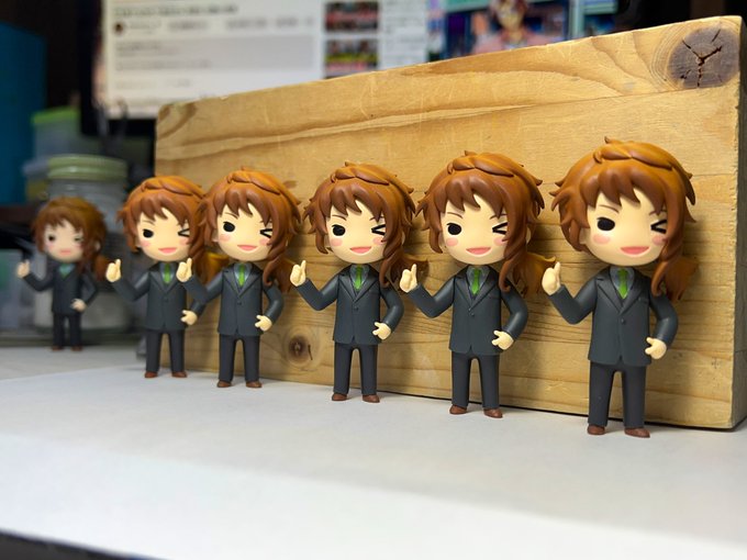グループ出来た🙌🙌 マリィが仕上がったら他のグループでも並べたいな🥰 わーい🙌ってしてるマリィちゃん可愛い🙏✨ 片足だから自立出来るか怪しいけど、もうちょい安定させたいのでマリィの足裏の面出し調整しなくては🏃♂️🏃 #ときメモGS4 #はばたき学園模型部 #wf2023s