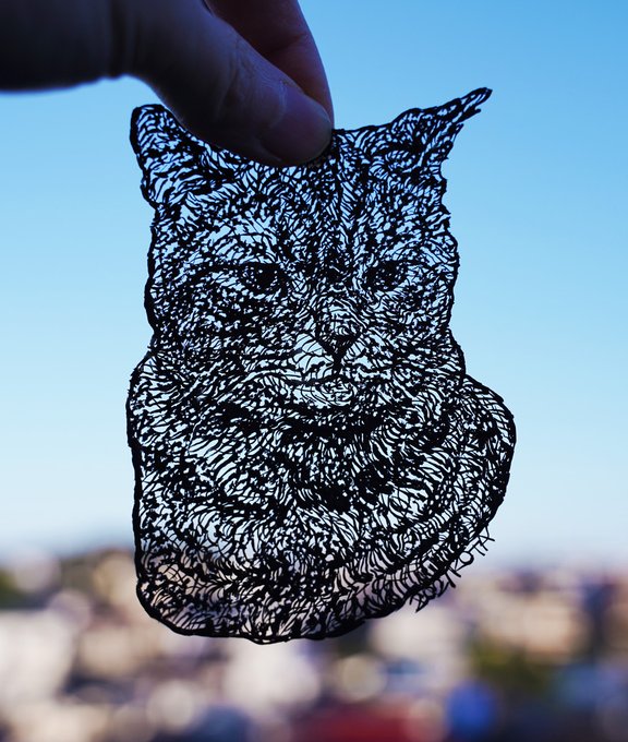 #猫の日 #にゃんにゃんにゃんの日 切り絵のようにも見えますが 細くした粘土を1本1本重ねて猫の作品をつくっております!! 今年も猫さんの作品たくさん作っていきたいともいます!! m(_ _)m