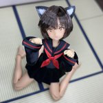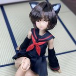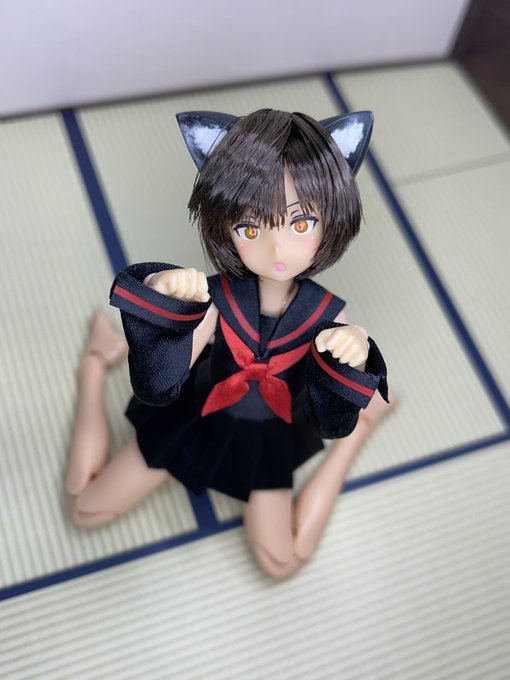スーパー猫の日なのであまりの破壊力に自制を込めて封印していたSOL用ウィッグを装着! セーラー服は村里屋さん(@ShiketanBuilder )の黒! ドールアイは坂田産業さん(@d9s2pd1 )の鬼ちゃん用受注品!ひじき! ちゃんと撮らせてくれねぇ…😭💕 #猫の日 #にゃんにゃんにゃんの日 #メガミデバイス