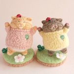 猫モチーフ作品など。 ・誘惑招き猫と挑発招き猫 ・雷狐と風猫 ・スニャイム缶とスニャイム鍋 ・和装猫又 4/22には、ニャンフェス( nyanfes.com )に参加予定です。 #猫の日 #にゃんにゃんにゃんの日