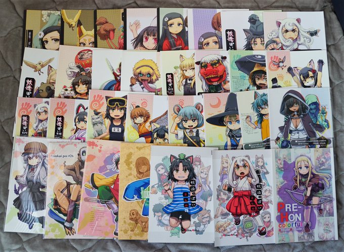 去年に同人誌「妖怪っぽい」の存在を知って集め始めましたが、ついに#1~28、まとめ01,02をコンプリート出来ました。過半が絶版で初期のものはプレミアが付いていたり#10が最後まで見つからなかったりで丸一年がかり。でもPRE-HONなど、まだ遡れるようですね…。 @ikenokappa #ねこむすめ道草日記