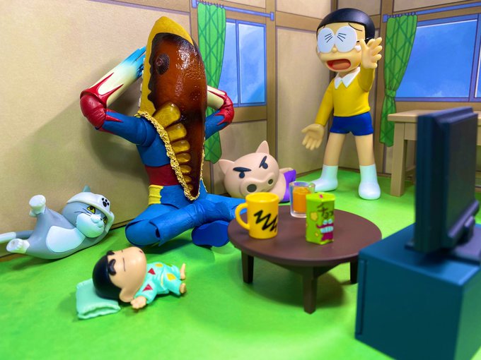 ジャイアン「おいのび太、俺等と冒険に行こうぜ…」 しずか「40秒で支度しな!」 #夜のフィギュア撮影会 7/18 お題「危険」 #ドラえもん #のび太 #アベンジャーズ #サノス #スーサイドスクワッド #ハーレイクイン #ラピュタ