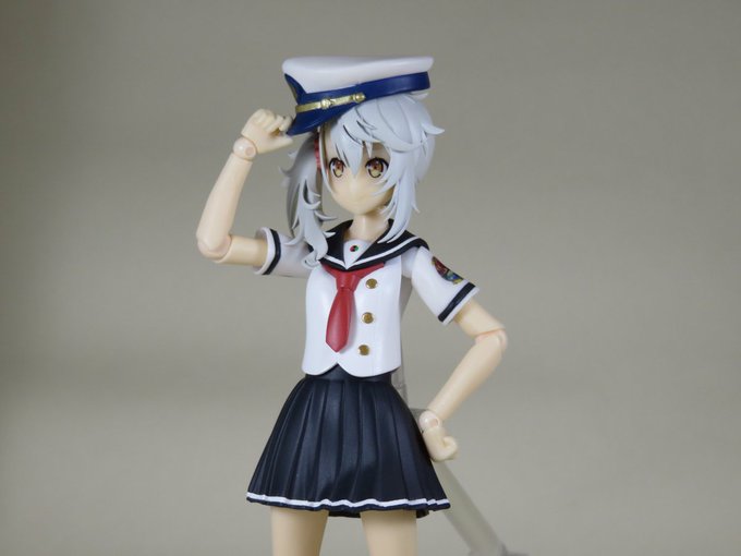 ハイスクール・フリートの岬 明乃ことミケちゃんのねんどろいどをお迎えしようかな⚓️⛵️🤔 余談ですがねんどろいどミーちゃんのポージングを昔描いたイラストのポーズにしてみました✨✨✨ #ハイスクール・フリート #はいふり