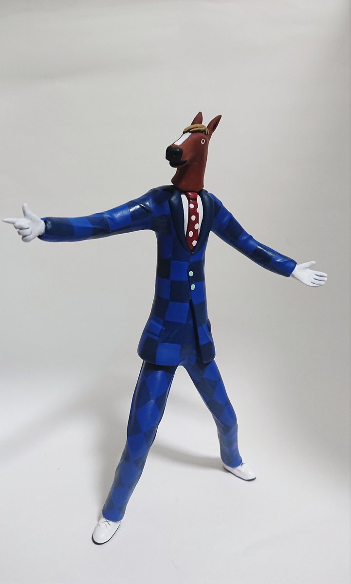 ばあちゃる人形5体目含めての撮影 今回はばあちゃるさんのスタイルの良さを表現する為に前回の禍つよりシャープに作成 スーツの皺も試しに実装したら身体のラインが出る感じがして良い感じになった #どっとライブ造形部 #ばあちゃる