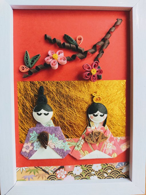 再掲ですが、お雛様ちゃんとツイートしてなかったので改めて! 季節の工作シリーズ、3月はひな祭りです🌸⋆*もうすぐで12ヶ月コンプリート✨✨頑張るぞ✊✨ #ひなまつり #ペーパークラフト #ペーパークイリング #みんなで楽しむTwitter展覧会
