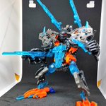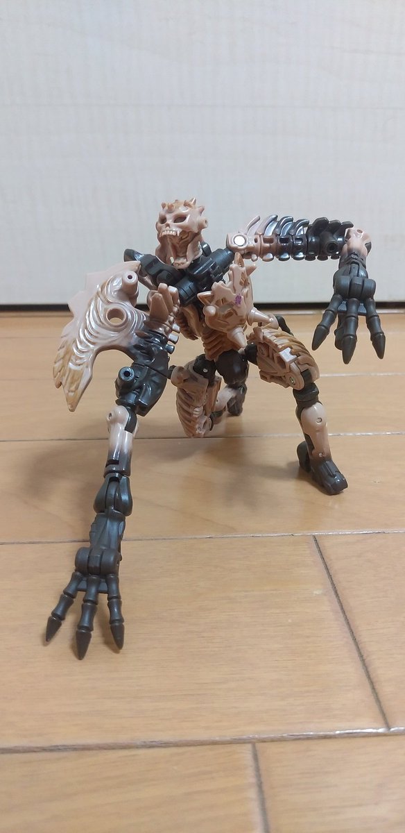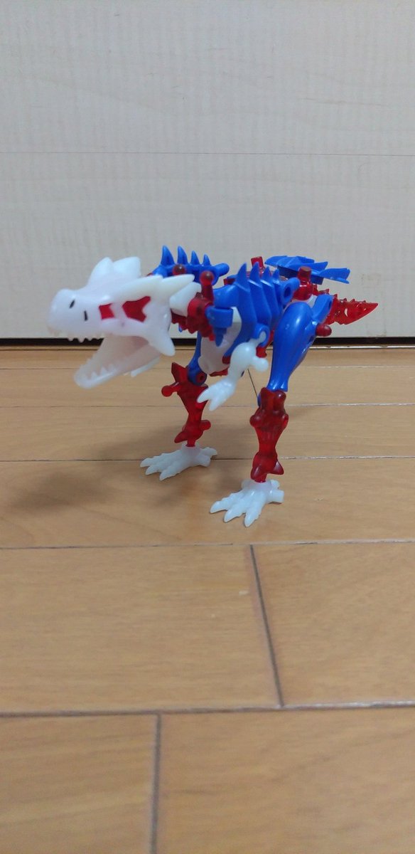 ほねほねザウルスとラクトナイトでめちゃくちゃいい感じにユナイト出来た、とりあえずフォッシカイザーと名付けとこう…アピールポイントは‥暗闇でめちゃくちゃ光るぞ #ほねほねザウルス #トランスフォーマー