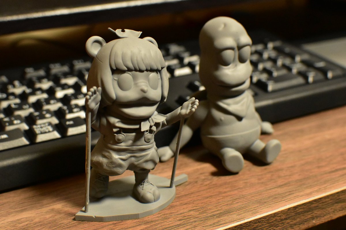 #オシャレになりたいピーナッツくん #ぽこあーと #ぴくちあ 3dプリンター でデニムくん作りました ちあちゃんが近くにいるとチュッチュします 勢いだけで作ったので表面処理してなくてガタガタです チュッチュする動画は続きで