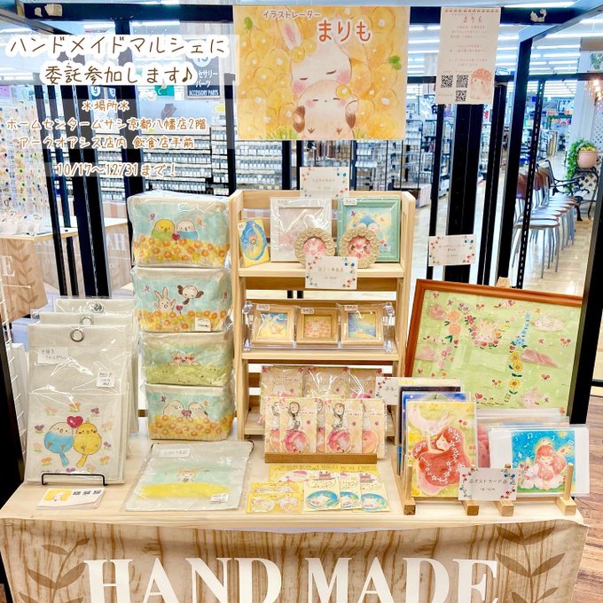 🌷お知らせ🌷 @aod_kyoto さん主催 ハンドメイドマルシェに委託参加します♪ 【場所】ホームセンタームサシ京都八幡店店内飲食店手前 12/31まで 沢山スペースに置きました💕 気になる方は是非😊 ☀️作品紹介しています☀️ hoshizola-biyori.amebaownd.com/posts/38203742 #まりものイラスト #イラスト #ハンドメイド twitter.com/i/web/status/1…