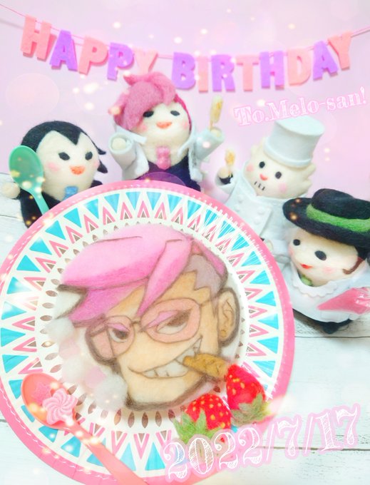 32 301 めろやんさん お誕生日おめでとうございます🎉羊毛フェルトでアイコンを🎂✨ いつもめろさんのまったりしたお声とても心地よいです☺️ #めろやん絵 22/07/17 00:26