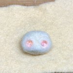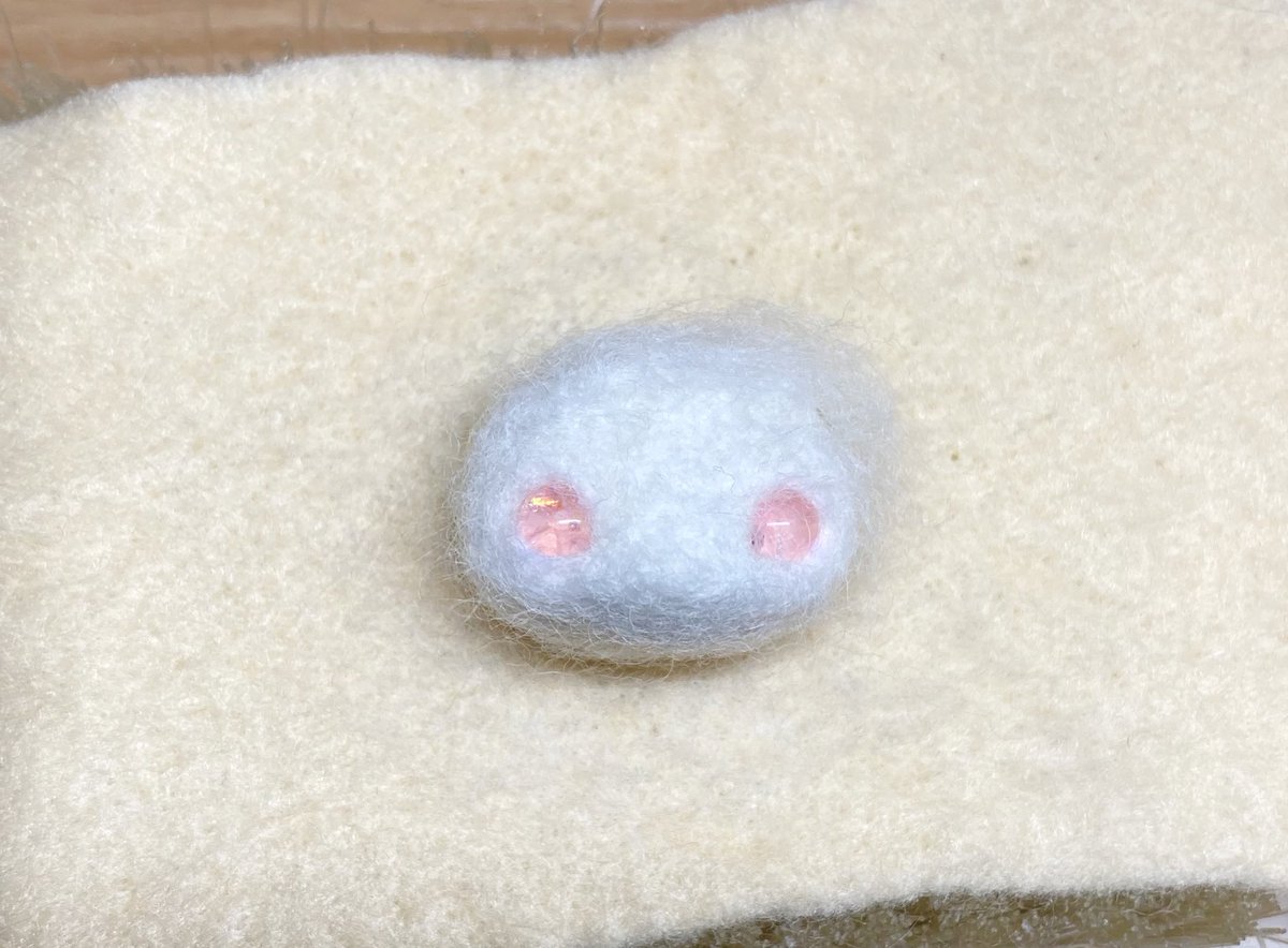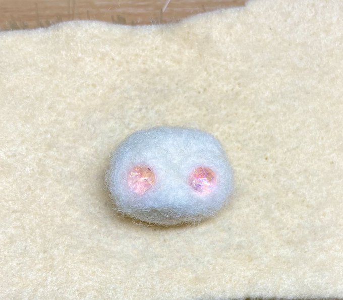 はいっ! 桜の管狐、誕生~🌸 白に淡~いカラーの子。だけど目元はきりりと目力👁️ 光の加減で瞳はかなりきらめきます!光がないと透き通るような桜色✨この子は #もふもふしっぽのきつね達展5 に連れて行きます! #羊毛フェルト
