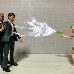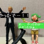 #夜のフィギュア撮影会 3/28 お題「反撃」 手を組んで浜田に日頃やられっぱなしの反撃をする松本人志。 と、なんだかよく分かってないけど呼ばれたから来たよつば。 #お笑いフィギュア劇場 #楽しく玩具撮影中 #オモ写 #ダウンタウン #よつばと