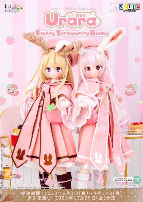 【#アイコレプチ】 人気ドールクリエイター「 s*t*j 」さまがマスク・アイ・衣装のトータルデザインを手掛けたフラッフィーワンダーランドからやってきた苺が大好きな女の子『うらら』が初登場🍓🐇💗 news.azone-int.co.jp/archives/51781 #azone #アゾン #BeshineWig 受注期間: 2023年3月3日(金)~ 4月17日(月)