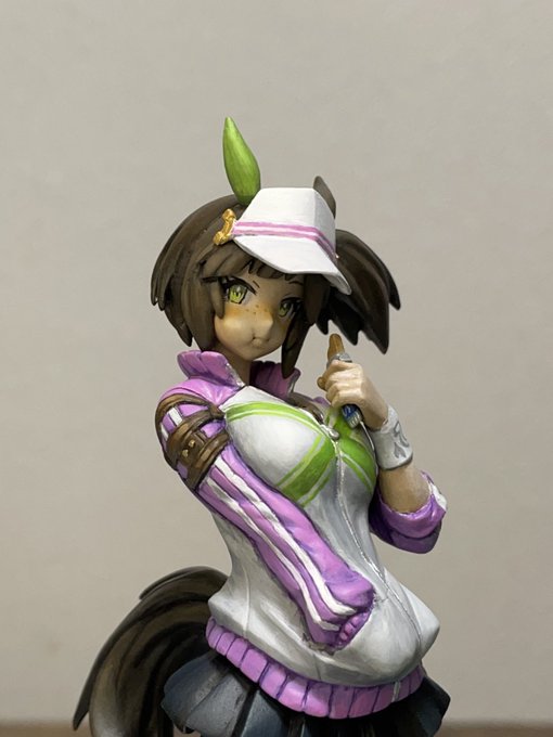 【ウマ娘】アイネスフウジン(ミニキャラ) ペーパーフィギュア 顔パーツ 頭部と合体!!スぺちゃん用ディスプレイ台(胸像)も使用 バイザーのせいでライティングが難しい・・・ #ウマ娘 #アイネスフウジン #ペーパークラフト #papercraft #ペーパーフィギュア #paperfigure