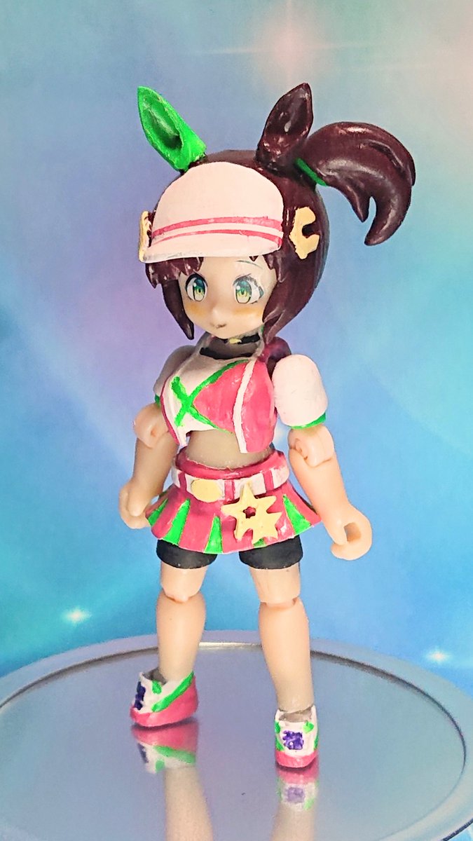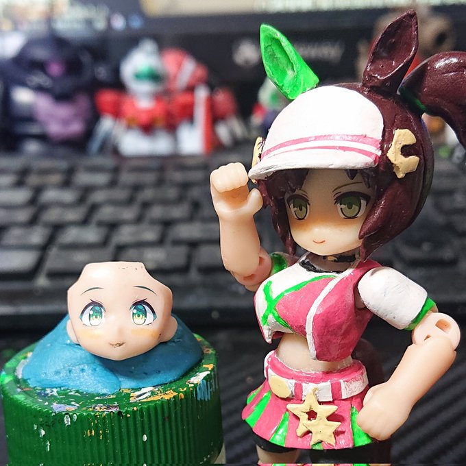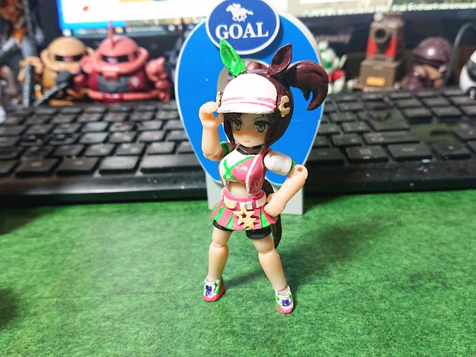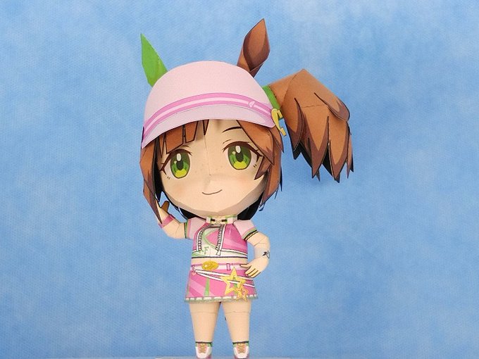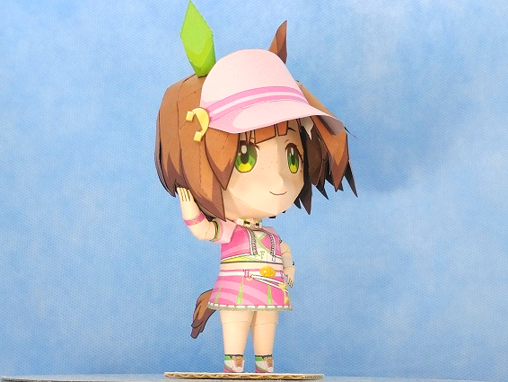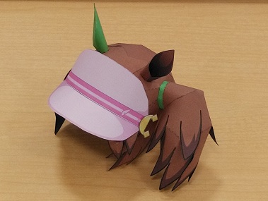 【ウマ娘】アイネスフウジン(ミニキャラ) ペーパーフィギュア 耳とサイドテールを取り付けてヘルメット的頭部 #ウマ娘 #アイネスフウジン #ペーパークラフト #papercraft #ペーパーフィギュア #paperfigure