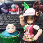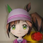 【ウマ娘】アイネスフウジン(ミニキャラ) ペーパーフィギュア 顔パーツ 頭部と合体!!スぺちゃん用ディスプレイ台(胸像)も使用 バイザーのせいでライティングが難しい・・・ #ウマ娘 #アイネスフウジン #ペーパークラフト #papercraft #ペーパーフィギュア #paperfigure