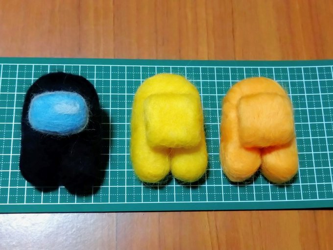 今日の羊毛フェルト 急に大きなものが作りたくなったけど、虎柄にしたらなんかおもってたのと違った(´・ω・`) #羊毛フェルト #羊毛フェルト初心者 #ハンドメイド好きさんと繋がりたい #アモングアス #AmongUs