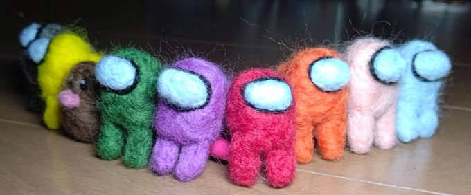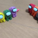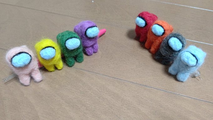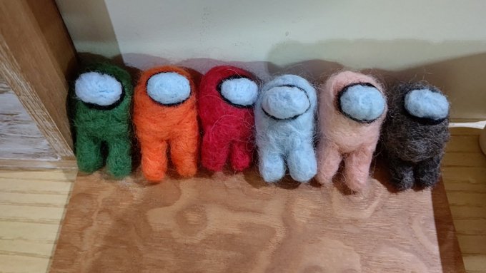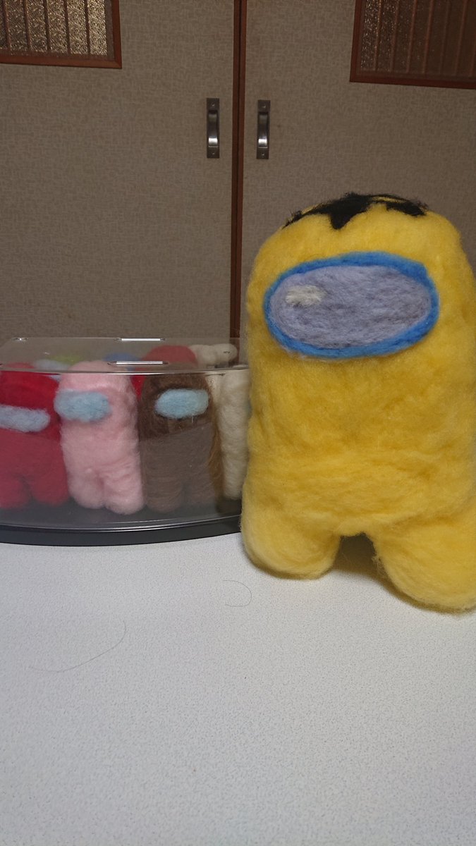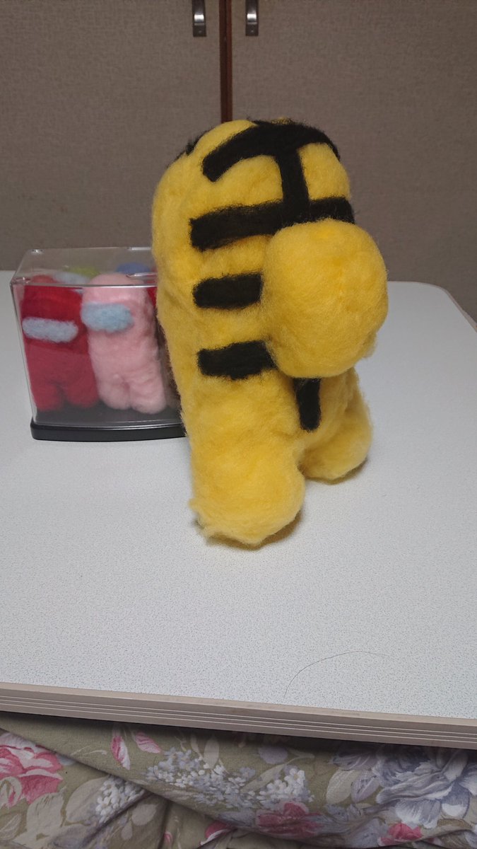 今日の羊毛フェルト 急に大きなものが作りたくなったけど、虎柄にしたらなんかおもってたのと違った(´・ω・`) #羊毛フェルト #羊毛フェルト初心者 #ハンドメイド好きさんと繋がりたい #アモングアス #AmongUs