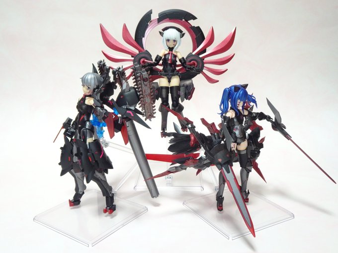 「小芦 睦海:冥憑」完成しました!近距離はクローとチェーンソーでズタズタに。遠距離はキャノンで粉砕。闇に飲まれてもゲームは大好き。そんなダークむっちゃん。対戦よろしくお願いします リプに続きます↓ #メガミデバイス #アリスギアアイギス