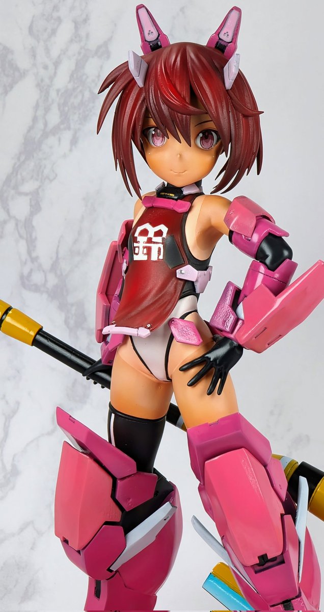 御茶ノ水 美里江 完成デス。 美里江本体はメガミむっちゃんの素体にパテ盛り造形 頭部はムスクトさん(@muscuto)の改造パーツに、瞳のみFMガール初音ミクの瞳デカールを使用 ギアは赤い靴CLUBさん(@s_enku)のガレキをメガミ対応に調整、改造しました。 #今月作ったプラモ晒そうぜ #アリスギア