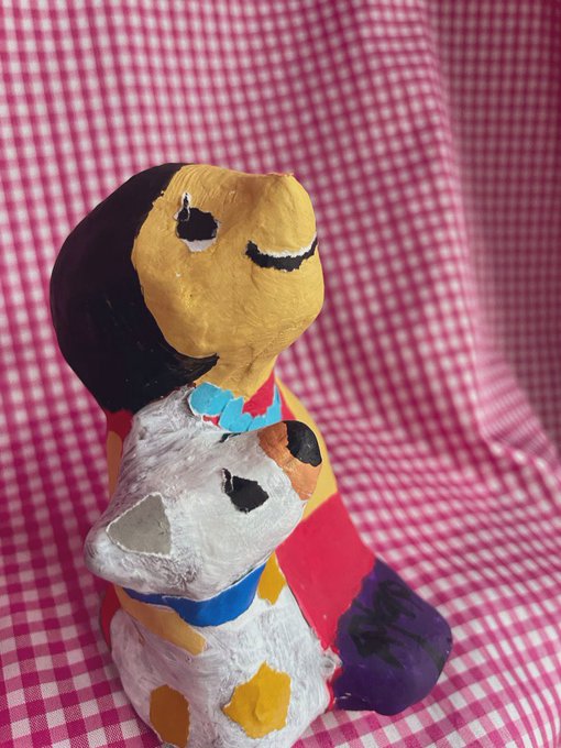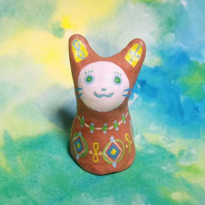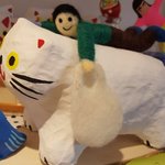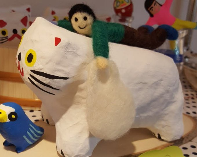 ネコと買い物 立体作品になります。ネコは張り子になってまして、上に乗ってる人間は友達に作ってもらったコラボ作品になります。 #芸術同盟 #絵描きさんと繫がりたい #イラストレーション #イラスト #illustration #doodle #art #japan