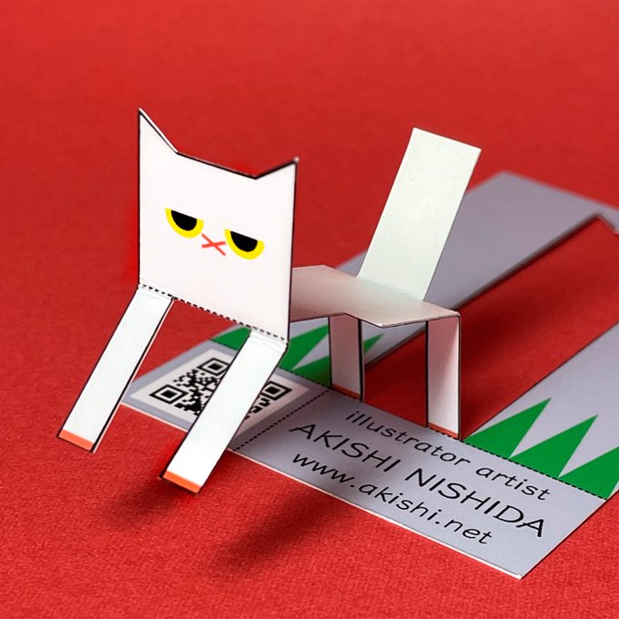 名刺を作ったので皆達に貰って欲しいけど、全然誰とも遊ぶ予定がないよ^^ #papercraft #ペーパークラフト #紙工作 #名刺 #businesscard #cat #illustrator #artist #イラストレーター