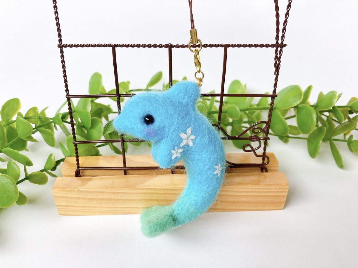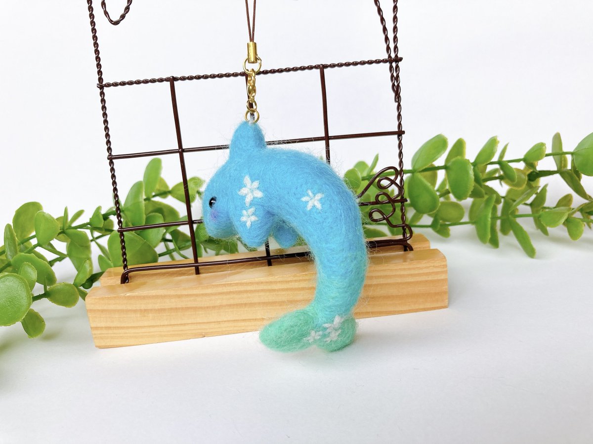 海の花咲くイルカさん シアン×エメラルドグリーン 羊毛フェルト ストラップ|ハンドメイド、クリエイター作品のマーケットプレイス #Creema creema.jp/item/13848696/… @Creema_jp #creemaで販売中 #creema新作 #イルカ #dolphin #羊毛フェルト #needlefelt