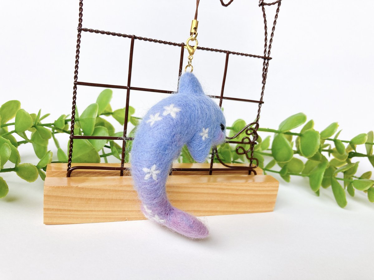 Aki Ako'S GALLERYさんの海の花咲くイルカさん 青紫×紫 羊毛フェルトストラップ minne.com/items/32179745 #minne #minneで販売中 #イルカ #羊毛フェルト #needlefelt #woolfelt #needlefelting