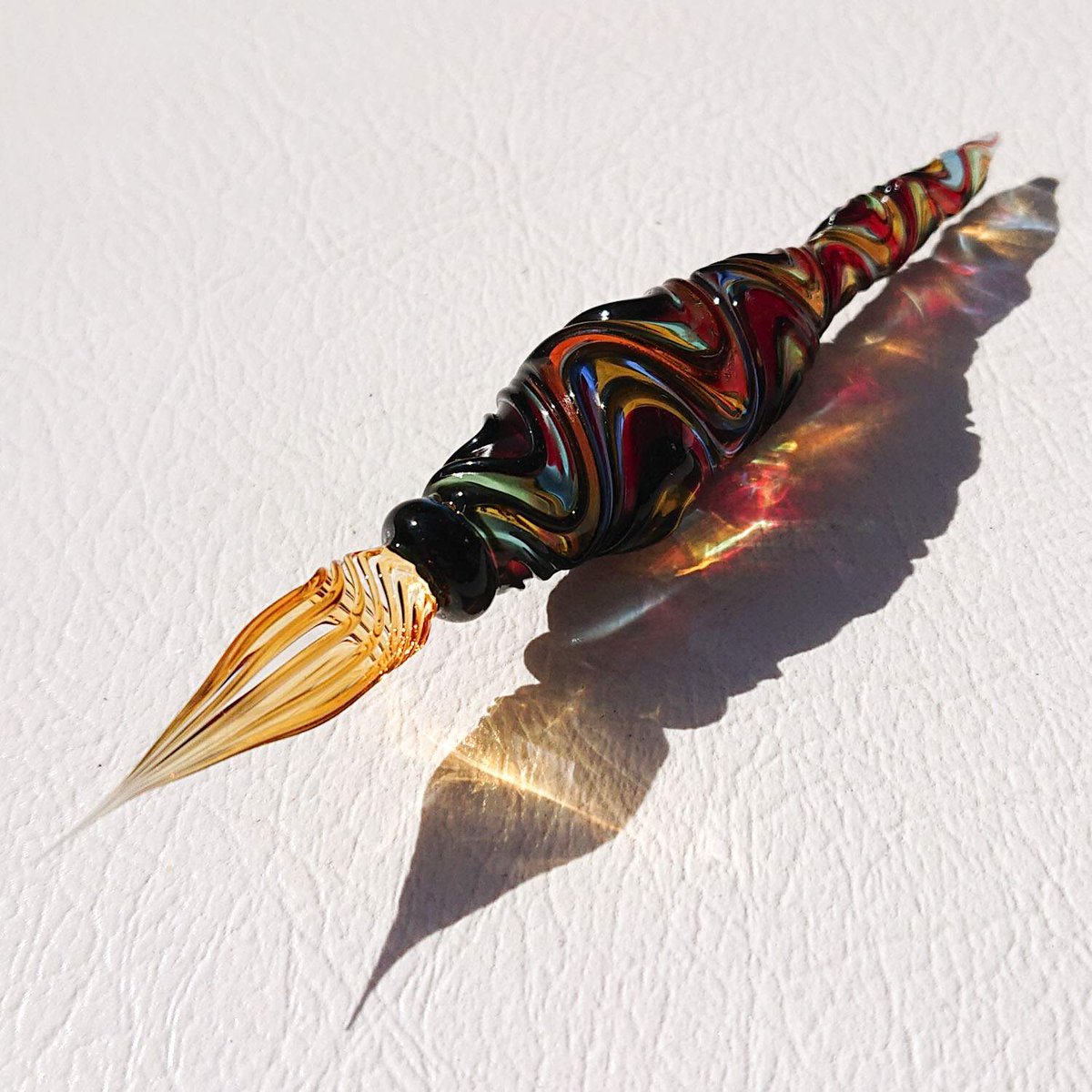 インク撹拌用マドラー販売開始 ステンドグラスガラスペンの美しい色合いを出す技法を使い、光の透過による影の変化をお楽しみ頂けます 角を付けることで撹拌能力を高めて塗りたくり等をする際に効率よく塗れるように底面を平面にしています 商品ページ↓ gensou.shop-pro.jp/?mode=cate&cbi… #インク沼 #文具