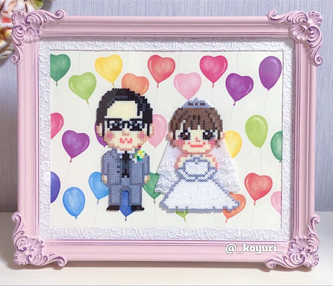 2 20 💒オーダー品💒 ウェルカムボードをご依頼いただき 制作いたしました◡̈♡ ドット絵がアイロンビーズになり 装飾を施し完成するまでを 簡単にまとめた動画は明日☪︎ #ドット絵 #アイロンビーズ #ウェルカムボード 21/10/05 22:10