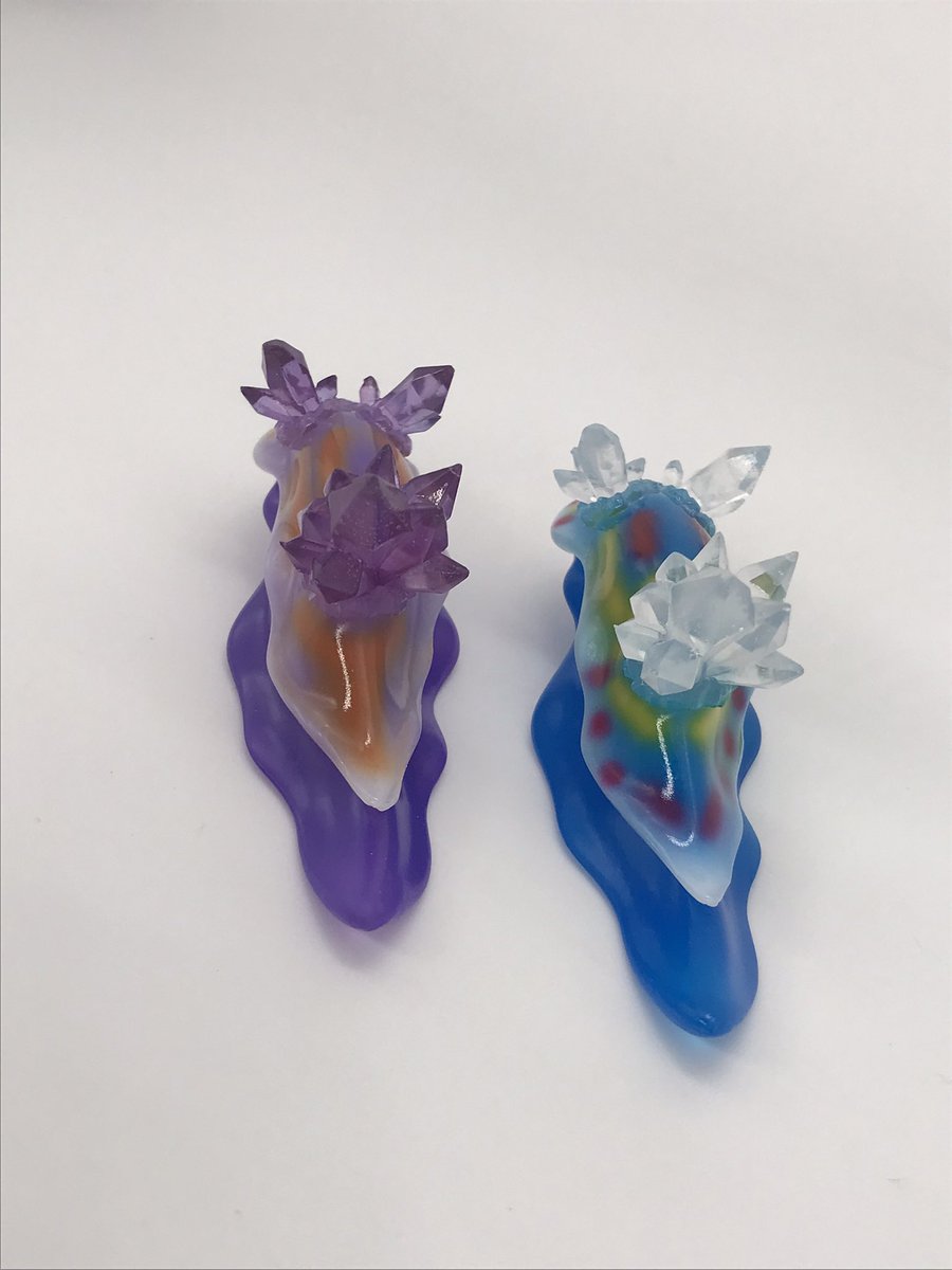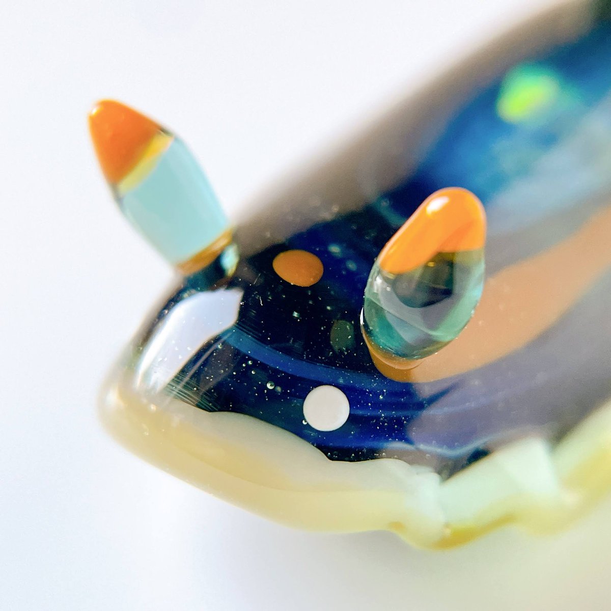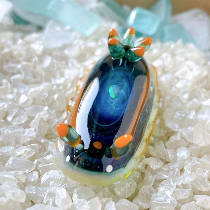 宇宙を宿したガラスのウミウシたち ”銀河ガラスウミウシ” 無数の種類がいる海の宝石ウミウシ。 ならばこんなウミウシがいてもいいのでは? そんな思いから生まれました。 リプに続く #ガラス細工 #ハンドメイド #アート好きな人と繋がりたい #ウミウシ #ウミウシ好きと繋がりたい #ウミウシ好き