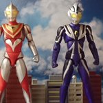 #夜のフィギュア撮影会 テーマ「赤・緑・青」 "大地の赤い光の巨人" と "海の青い光の巨人" #ウルトラマン #ウルトラマンガイア #ウルトラマンアグル #特撮 #ウルトラアーツ #ちいさな巨大特撮 #フィギュアーツ写真部 #フィギュア撮影友の会