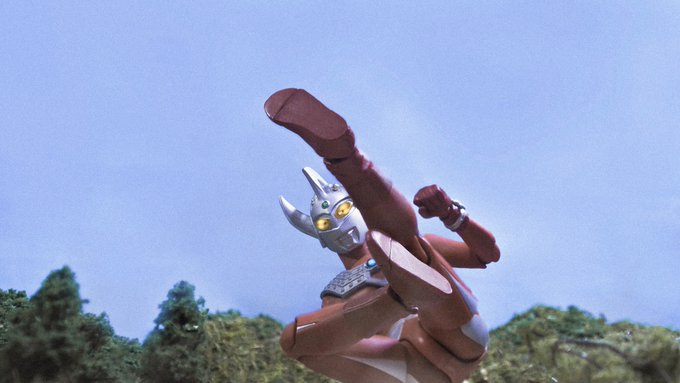 #夜のフィギュア撮影会 #リョウのオモ写 #豆魚雷オモ写 #ちいさな巨大特撮 #ウルトラアーツ #ウルトラマンタロウ お題「救」(既出) 撃墜された戦闘機を救うウルトラマンはとても頼もしい。