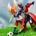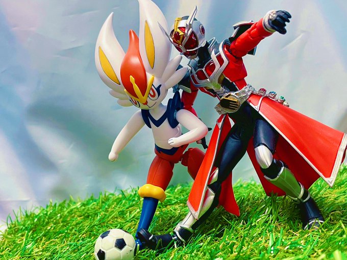 #夜のフィギュア撮影会 2/27 お題 『赤・緑・青』【遅刻】 三竦み #Pokemon #ポケモン #オモ写 #バンギラス #Tyranitar #ルカリオ #Lucario #エースバーン #Cinderace