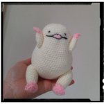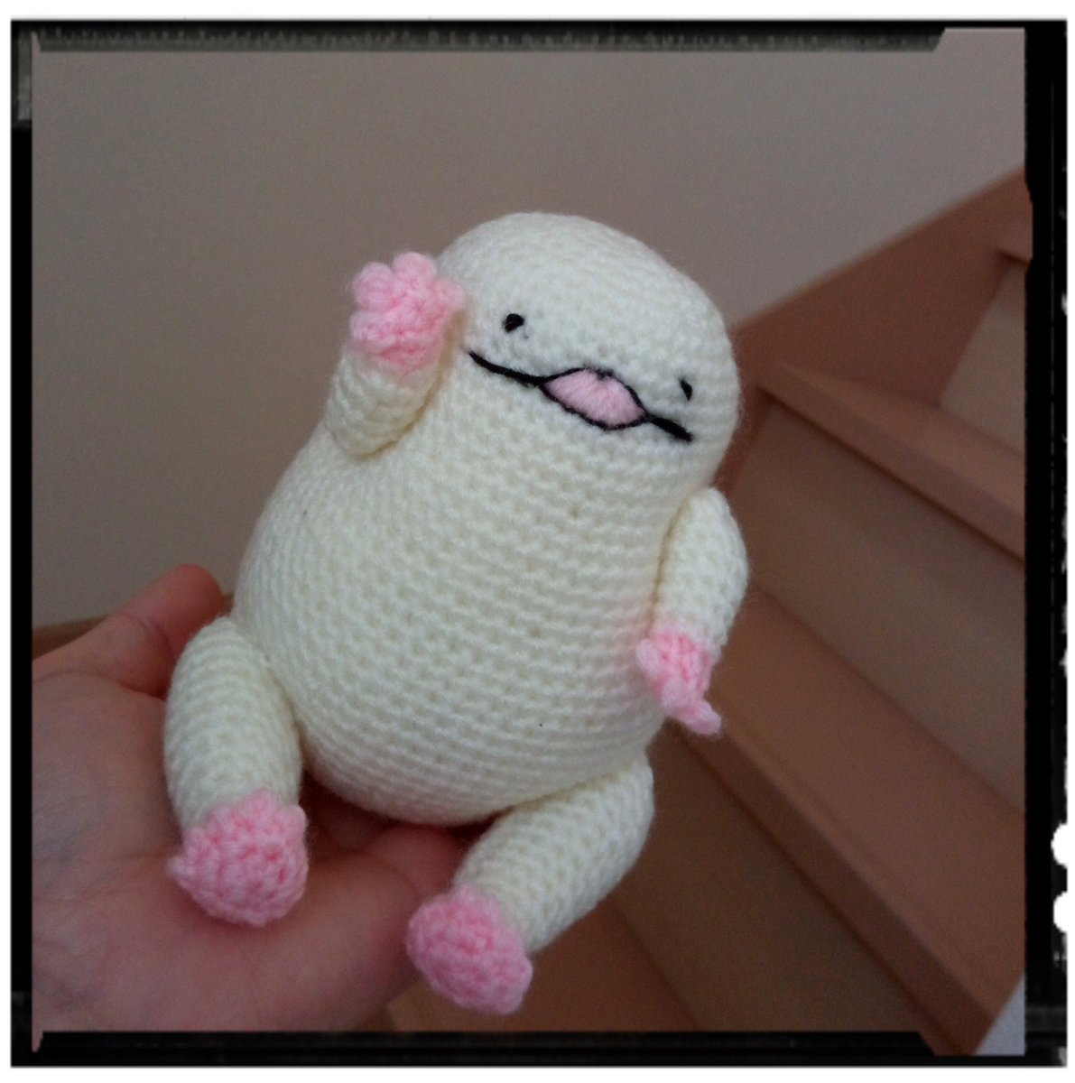 モコさんとこのオオサンショウウオちゃん出来たー\(^o^)/ 改善点は多々あるけど、ひとまずコレで完成とする! 手は少し動きます。 #あみぐるみ #オオサンショウウオ #オオサンショウウオの漫画