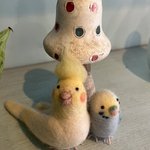 前回の肩乗りブローチのお客さまからかわいいツーショットいただきました❤️ありがとうございます じっと見てますねー🤭 ぶどう目ということで暗い赤色のお目めにしています #オカメインコ #cockatiel #羊毛フェルト