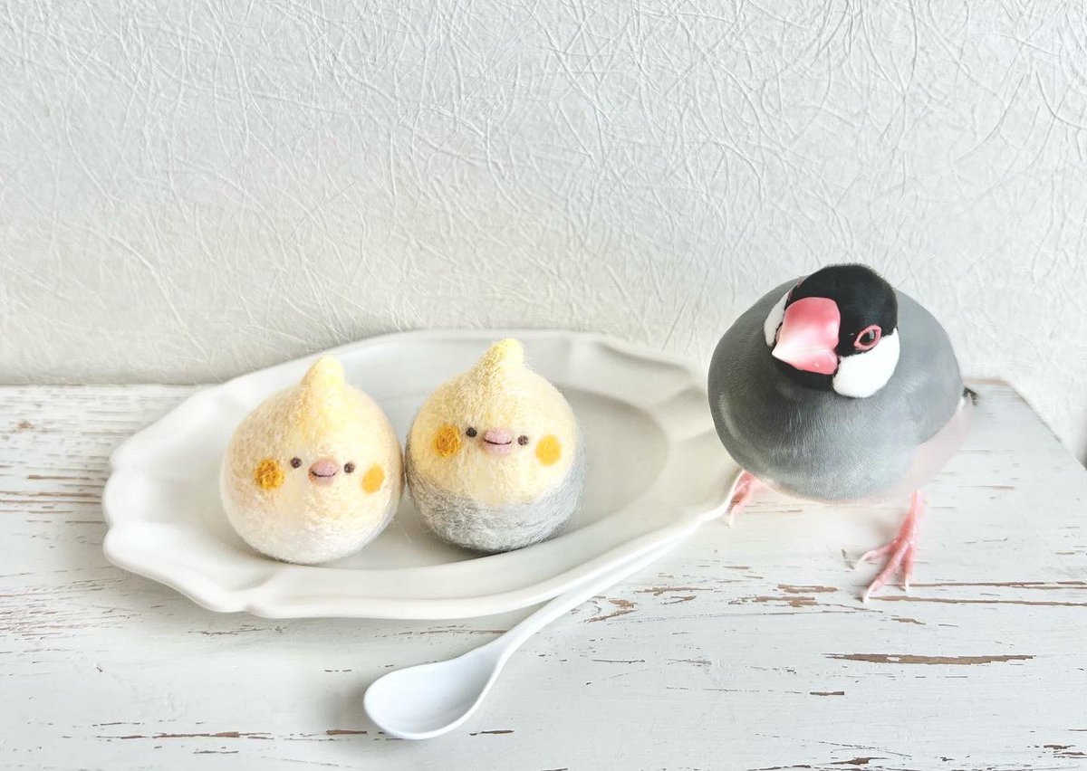 “うちの子オーダー”とさせていただいてるからにはその子ならではの魅力を表現できるように💖 写真と見比べながらの微調整に神経と時間をかなり使いますが😂 可愛いモデルさんに少しでも近づけるように頑張らせていただきます💪😁✨ #オカメインコ #羊毛フェルト #鳥好きさんと繋がりたい