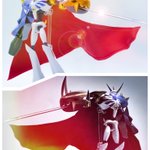 こうして並べてみると違いがよく分かります。 左:SHF 真ん中:あるてぃめいたむさん作 右:D-Arts 素晴らしいクオリティ🙏🏻✨ とても繊細なつくりなので、オモ写でガシガシ遊ぶのはやめときます!笑 #オモ写 #デジモン #digimon #デジタルモンスター #digitalmonster #オメガモン