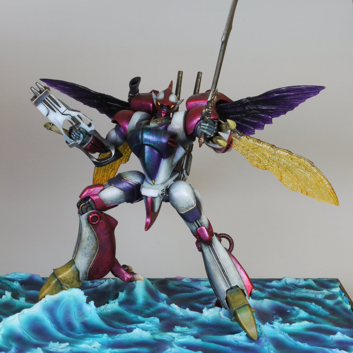 羊毛ダンバイン完成しました😄 全体に挿し色をしてイラスト調の色合いにしたり、薄い羽を頑張ったり。今まで以上に色々チャレンジした作品になりました! (たぶん)世界初のウールバトラーです😆 #羊毛フェルト #ダンバイン #オーラバトラーオフ会投稿 #needlefelt
