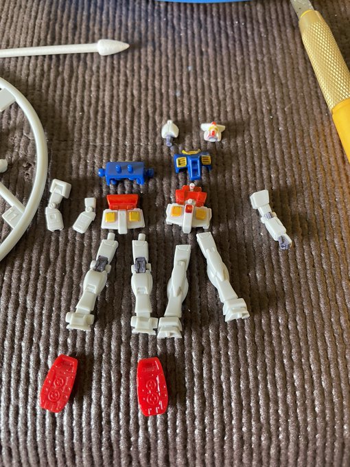 1/200横浜ガンダムの殺人レベルの塗り分けよりは楽だけどコレを塗り分けた時点で狂気のレベルだな…このカップヌードルの1/380のシリーズ塗り分けする場合ガンダムが鬼門って言われてるのよくわかるわ。 #ガンプラの画像貼るとRTされると聞いて #ガンダム #カップヌードル