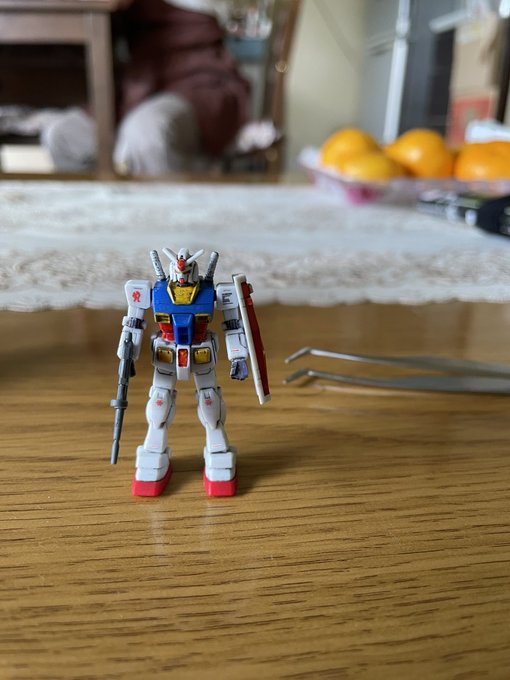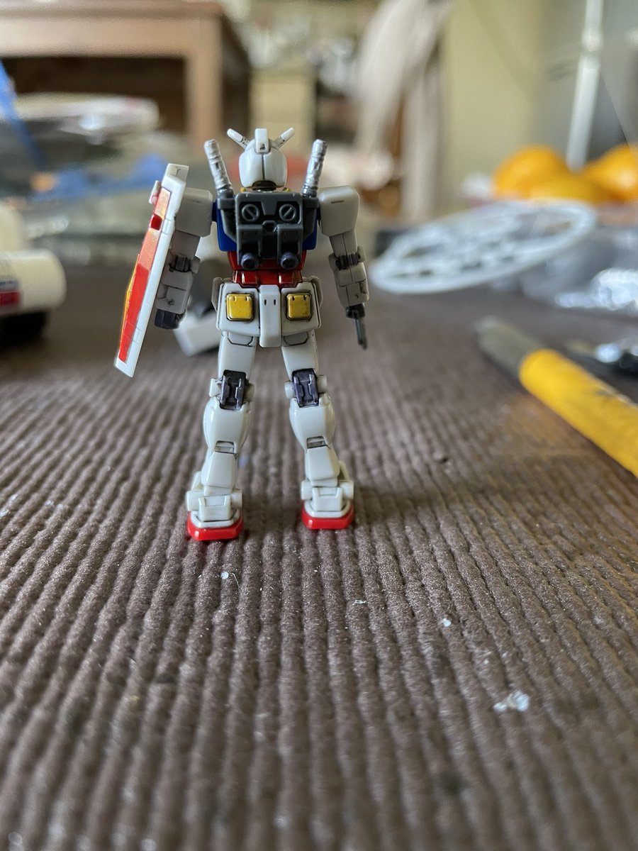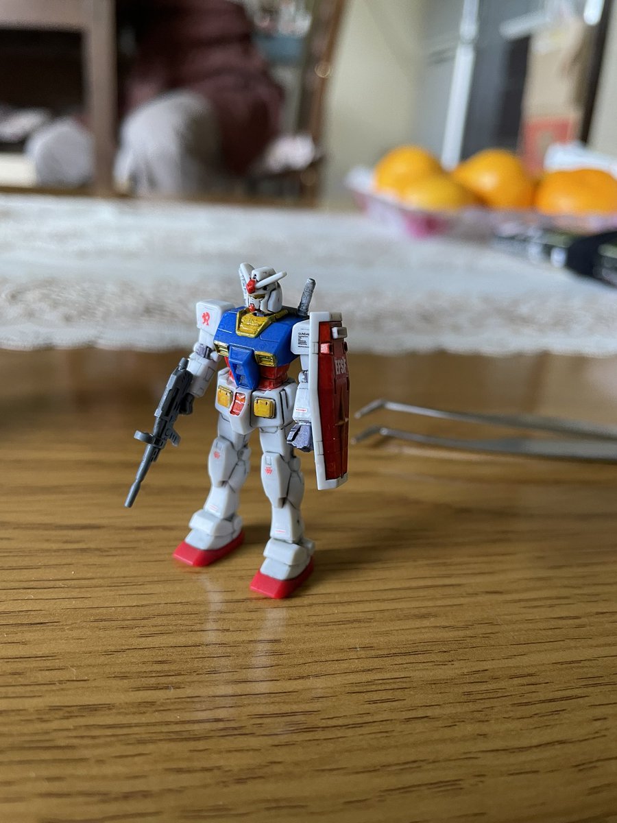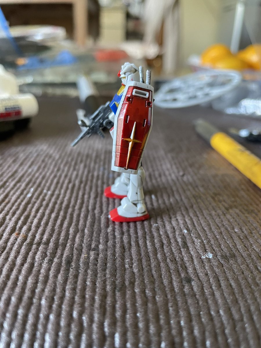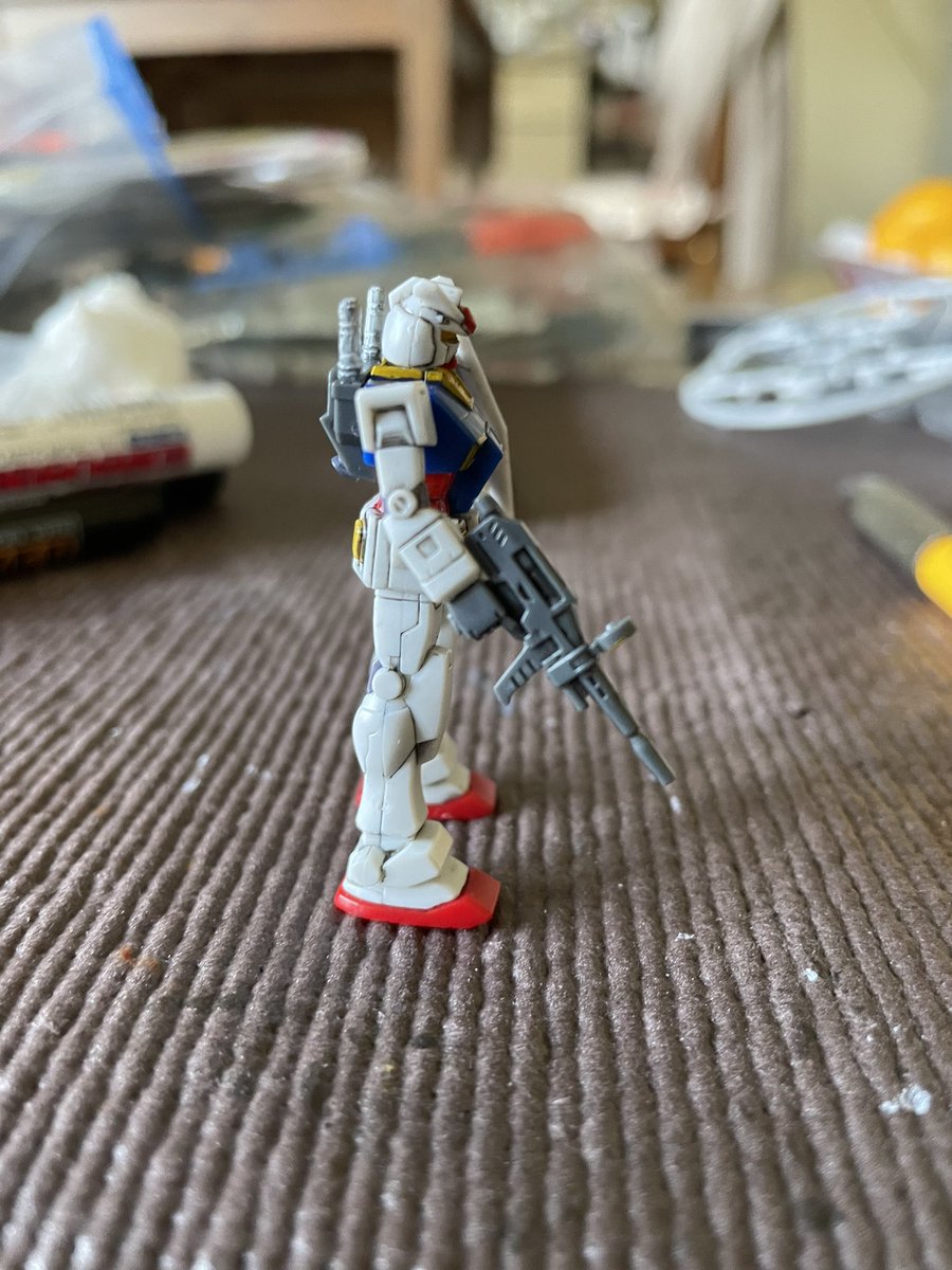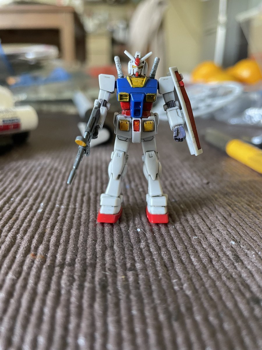 3時間くらい前に塗り分けは完了したカップヌードルのオマケ、1/380 RX-78-2ガンダム。このサイズになってくるとかなり塗り分けが大変だったりする。#ガンプラの画像貼るとRTされると聞いて #ガンダム #カップヌードル