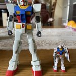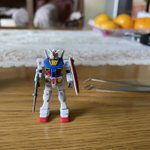 その後、マーキングシールでディテールUP処理を実行したのがこちら。このサイズに合うマーキング探す方が大変だった…最後の4枚目にEGガンダムとの大きさ比較画像を出してあります。コレでサイズがわかると思います(笑 #ガンプラの画像貼るとRTされると聞いて #ガンダム #カップヌードル