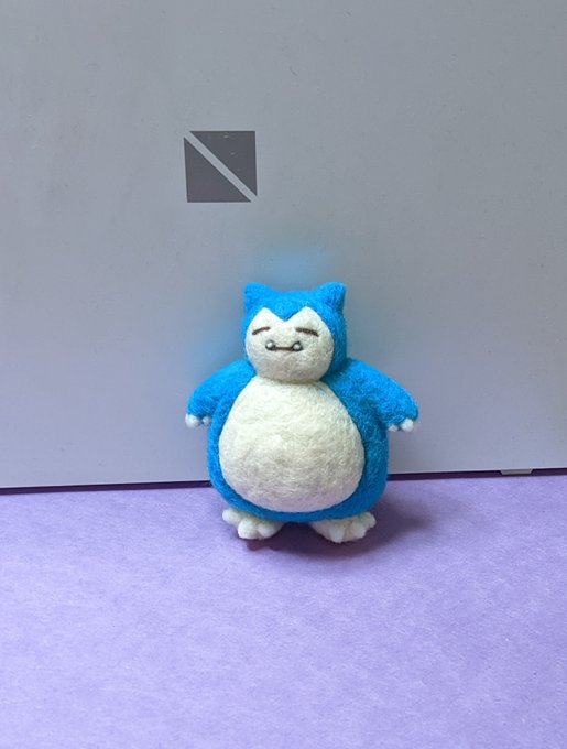 ポケモンのカビゴン。小さい手乗りカビゴン。我慢できなくて、いろんな用事をさぼって作ったカビゴン。癒やされるカビゴン。可愛いので後悔は無いカビゴン。なんて言ってたらポケモン完全新作でるってニュース。夜中にカビゴン持って1人騒ぐ。 #カビゴン #ポケットモンスター #羊毛フェルト